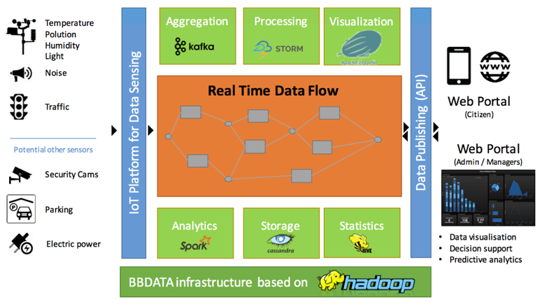 The first objective of the project is to equip the blueFACTORY site and adjacent street crossings with flexible IoT sensor platforms. These sensors will be able to infer traffic, measure air pollution, noise pollution and illumination. The second objective is to collect and process this information, enabling services to estimate quality of life indices and end-user applications for the collectivity. Finally, the data and sensor platforms will be offered to the SLL teams for their own projects through BB-DATA. This converged platform will allow the seamless usage of the data in diverse smart city use cases.